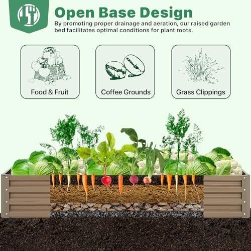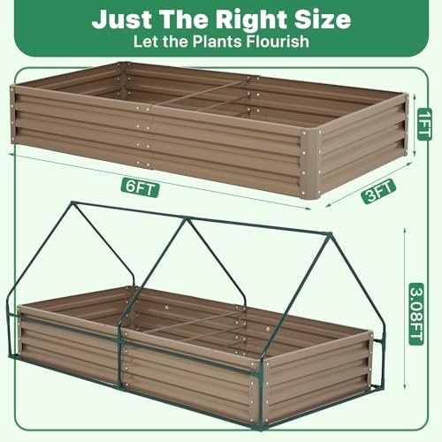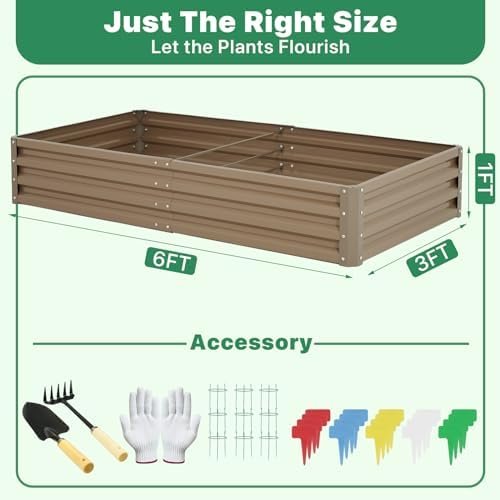 【Spacious and Durable Construction】 Measuring 6x3x1 FT, the raised planting bed offers ample space for vegetables, herbs, and flowers. Constructed with thick galvanized metal, it ensures durability and stability, and can hold approximately 18 cubic feet of soil, making it suitable for gardens of any size.