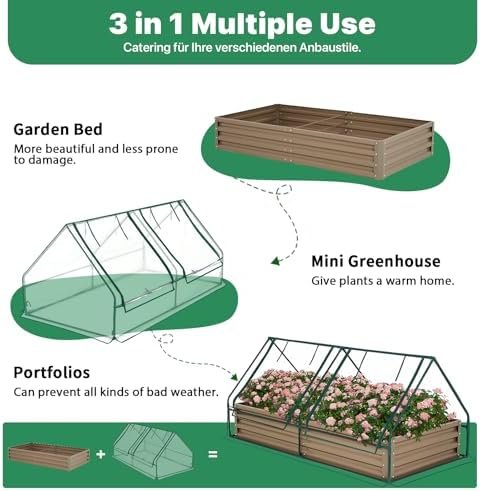 【3-in-1 Versatile Design】 This innovative garden bed kit includes a raised garden bed, a detachable mini greenhouse, and a combination setup of both. It’s perfect for customizing your gardening experience, whether you’re looking to grow plants in the open air, under a protective cover, or both.