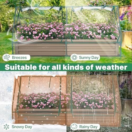【Robust and Weather-Resistant Materials】 Crafted from hard, stable, extra-thick galvanized metal, this garden bed is built to withstand diverse weather conditions. It features three strong middle poles for additional stability, preventing bending and ensuring long-term use.