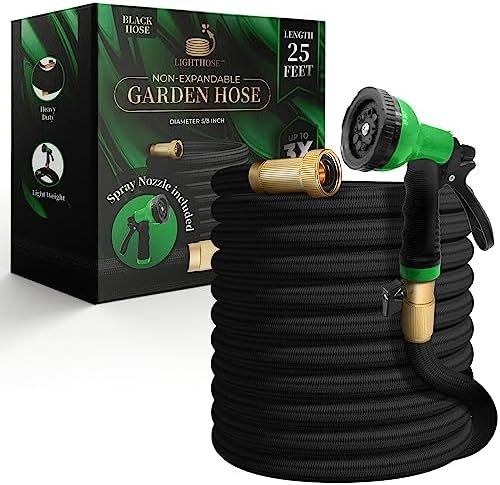 Garden Hose, NON-EXPANDABLE Garden Hose, Super Light Weight Hose, No Burst, 3/4 inch Solid Brass Connectors, 25 Ft, Black