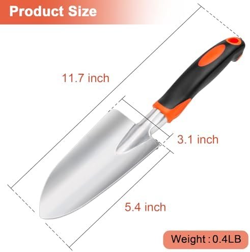 [Ergonomic Design]: The trowel garden tool is designed with an ergonomic rubber-grip handle that reduces hand and wrist fatigue while digging. The high-quality non-slip TPR material of the handle makes the trowel garden tool easy to hold and comfortable to use. Saving your labor, time and energy.