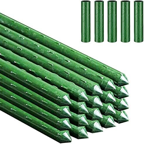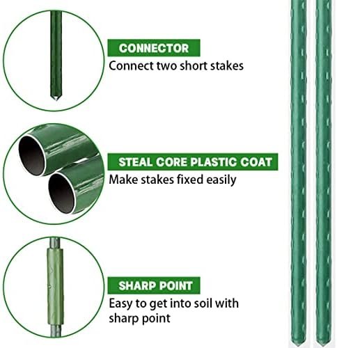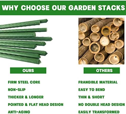 Durable Material: Garden plant stakes is made of hollow steel core with plastic coated, which is rust proof, sturdy and durable, provides strong support for vegetables and vine plants.