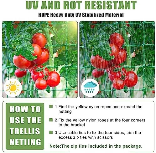 ✅ THE IDEAL 4*4 INCH MESH FOR PLANT GROWING – The tomato trellis net adopts 4*4 inches aperture trellis, which leaves enough space for the leaves and fruit growing of the plant to pass through. This pea trellis netting can effectively guide the growing direction of vine plants and maintain the health of each branch of fruits, vegetable plants.