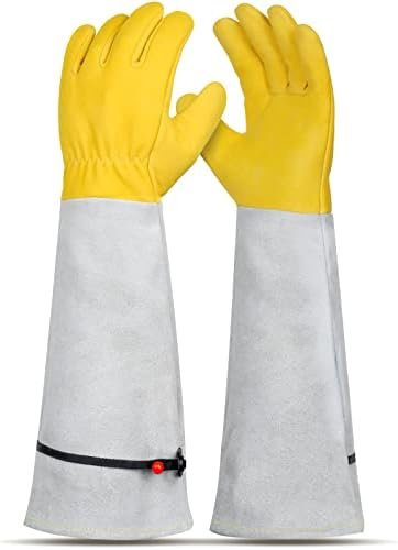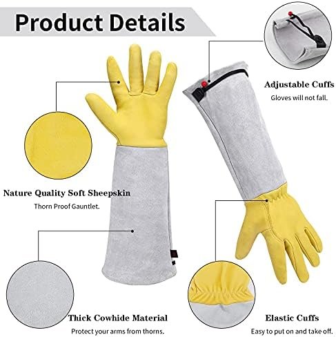 Rose/Cactus/blackberries/Berries/Prickly Plants/ Pruning Gloves for Men&Women – Natural Goatskin Hands and Cowhide Sleeves Gauntlet- Long Thorn Proof Gardening Gloves – Best Garden Gifts&Tools for Gardener/Awesome addition to gardening tool set