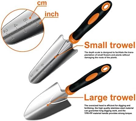 【Stainless steel makes your tools last longer】The metal part of garden scissors,rake,hoe,shovel,hoops and so on is made of stainless steel, so you don’t have to worry about the quality of the product. You can have good rust prevention and corrosion resistance,which guaranteed to last you a long time.
