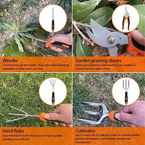 Works Better With Gloves:Pair the garden tool set with a pair of gardening gloves, which are safe to protect your hands when you need to use them in direct contact with soil, plants and leaves. And with the use of tools can play a very good anti-skid effect.