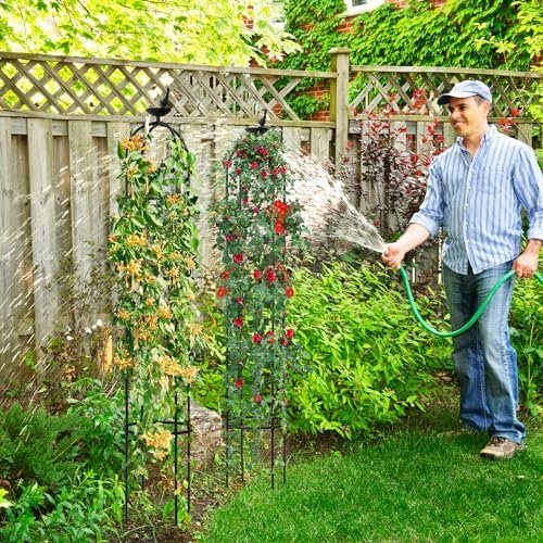 [Durable & Safe Material]: In contrast to normal metal tubes that easily burn plants, this plant support trellis is constructed of durable PE-coated metal tubes, which are rustproof and weatherproof, and not easy to burn plants. Moreover, with the upgraded plug-in design, along with thick supporting rings, it provides reliable and long-lasting structural stability.