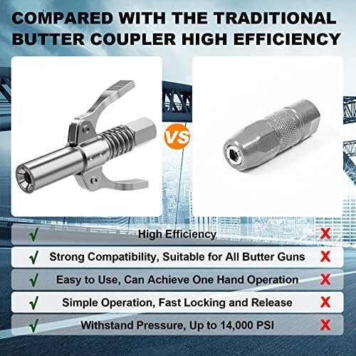 【SIMPLE OPERATION】The fat gun coupler has a smooth and powerful 3 jaw locking function, one hand operation, lubrication without need to hold, after locking can liberate your hands, save time and effort, is a good helper for your work