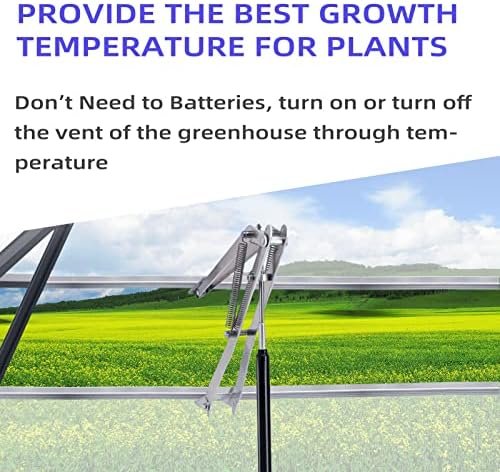 【VERY ECO-FRIENDLY】Double spring greenhouse window opener does not require batteries or electricity, as the indoor temperature and air pressure rise or fall, it automatically opens or closes the greenhouse’s vents, which maintains the optimal temperature for plant growth.