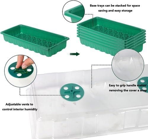 Premium Material — Made of transparent material, it allows you to carefully observe the trend of seeds growth. The humidity dome is also designed with a vent which allow for oxygen exchange and moisture retention, creating the optimum climatic conditions for your seeds.