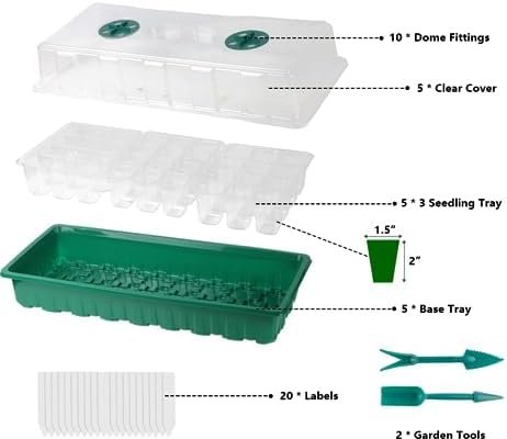 What You Get — 6 x Seed Tray, 6 x Humidity Dome, 12 x Plant Labels, 1 x Garden Tool Kit. The entire set for you to start seedling easily indoor and outdoor. If missed the labels or received damaged trays, please feel free to contact us and we will try our best to make things right within 24H