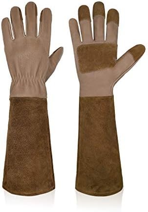 Soft & Puncture Resistant: These gauntlet gardening gloves are ideal for protecting your hands from brambles, trimming roses, pruning holly bushes, poison ivy, berry bushes, and other prickly shrubs, tending to cactus plants, weeding, picking her blackberries, yard work.