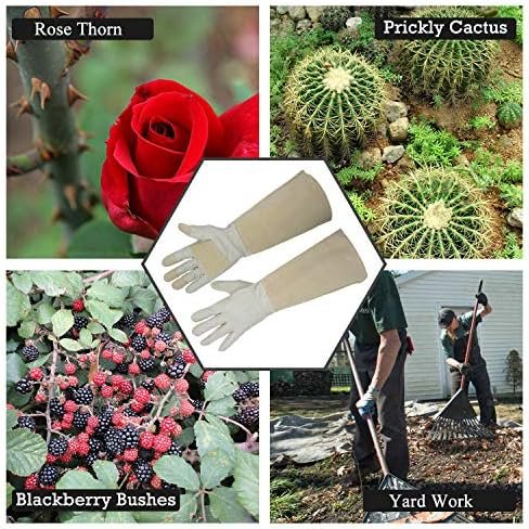 HANDLANDY Pruning Gloves Long for Men & Women, Pigskin Leather Rose Gardening Gloves- Breathable & Durability Gauntlet Gloves Medium