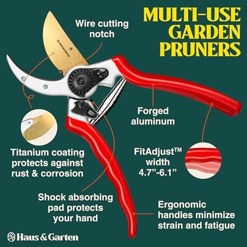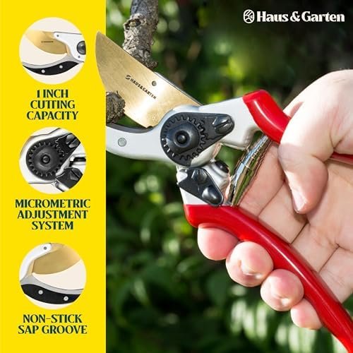 Haus & Garten ClassicPRO 8.5″ Professional Premium Titanium Bypass Pruning Shears – Use As Pruners, Garden Shears, Heavy Duty Handheld Pruning Shears For Gardening, Clippers, Pruning Scissor Tool