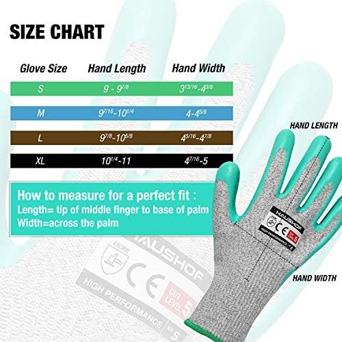 EASY CLEANING – Eco-friendly latex will not hold a smell whatsoever and can be cleaned easily. HAUSHOF gloves fit like a second skin and can fit your hand flexibly in gardening work like pulling weeds and trimming bushes as well as mechanical work, construction work, etc.