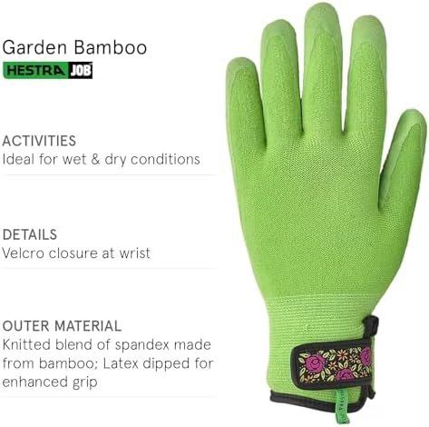 DESIGNED FOR: The Hestra Garden Bamboo Latex Dip Garden Gloves are ideal for potting, planting, weeding, tool use and general gardening.