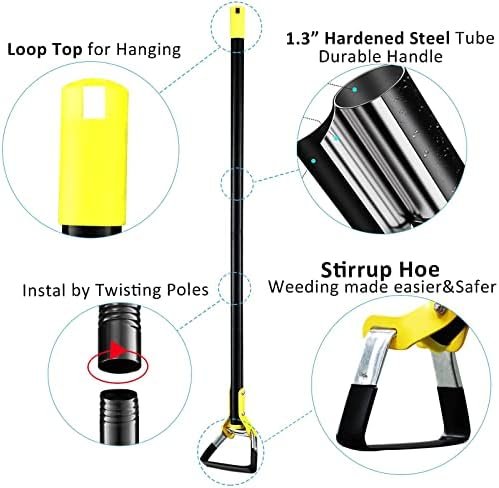 ▶【Easy to Install】1 mins to assemble this collinear hoe by screwing 3 pieces together with no extra tools required. Exactly different hoes gardening!