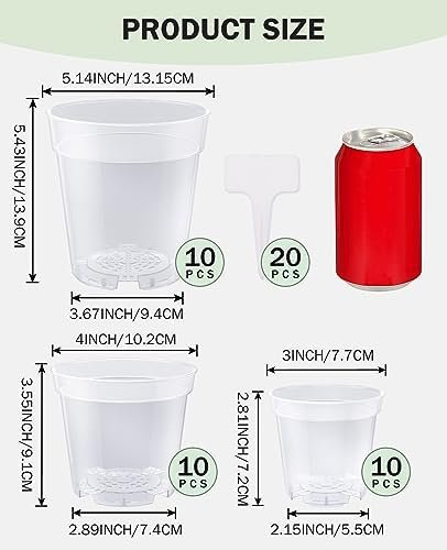 HOMENOTE Clear Nursery Pots for Plants,3/4/5 Inch Seedling Pots with Drainage Holes Plant Pot for Planting Flower Indoor Seed Starter Pot Outdoor High Transparency with Bonus 20 Plant Labels (30 Pack)
