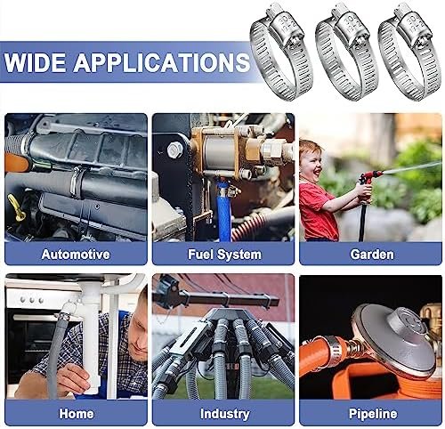 ❣【Wide Applications】- Our adjustable pipe clamps are used in securing and sealing hoses, pipes, plumbing, cable, tube, fuel lines etc. Perfect to apply in home, gas line, drip irrigation, garden sprinkler, pool, radiator, heater hose, truck repair, automotive, industrial, boat, marine, bilge, mechanical, electronic etc.