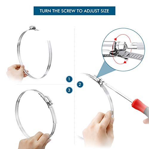 Easy to use: you just need to loosen or tighten the screw of the hose clip by a screwdriver to adjust the size, attach the hose to the fitting tightly, and it can be applied to secure hoses, pipes, cable, tubes, etc.