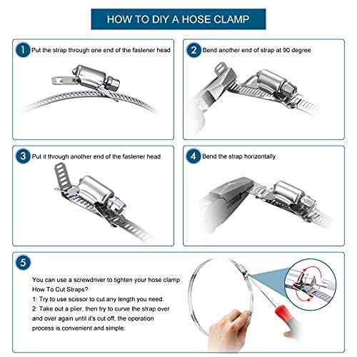 DIY hose clamp: you can trim the hose clamp strap in length you want easily, then insert the fastener to make a suitable size you want, no more waste any materials; You will get 1 piece adjustable hose clamp and 8 pieces fasteners, enough quantity to meet your different needs
