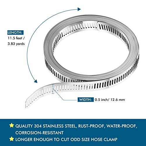 Longer hose clamp: the stainless steel duct clamp strap’s total length is 11.5 feet, suitable to cut and get your long large hose clamp in different sizes, such as 12 inch, 14 inch, 16 inch and so on, the max size is 43 inch