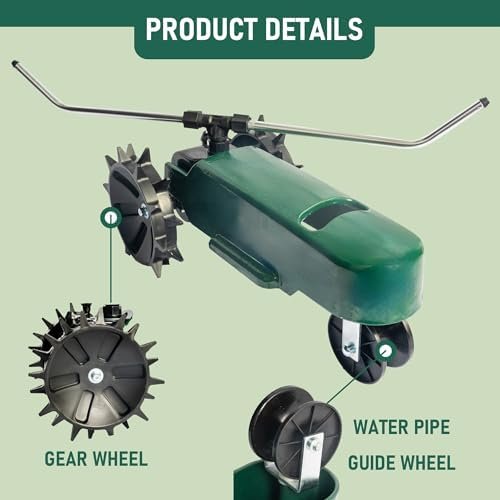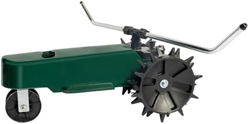Made with cast iron and high-traction wheels, this traveling sprinkler is robust, durable.