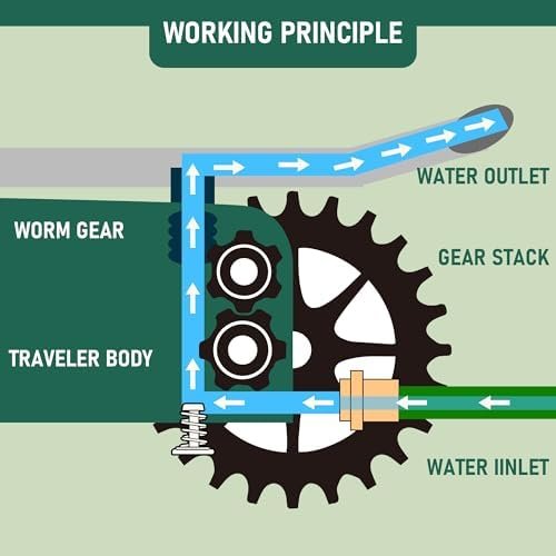 Robust Cast Iron: With its heavy-duty cast iron build and sturdy, high-traction wheels, this traveling sprinkler is built to last. It stands up to high water pressures and harsh weather conditions without the risk of damage or rust.