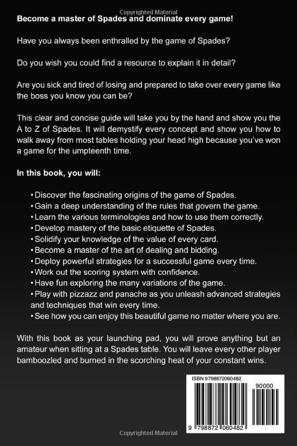 With this book as your launching pad, you will prove anything but an amateur when sitting at a Spades table. You will leave every other player bamboozled and burned in the scorching heat of your constant wins.
