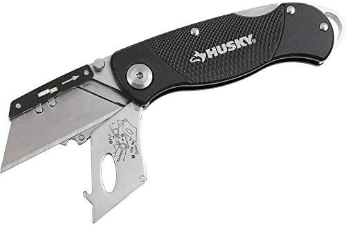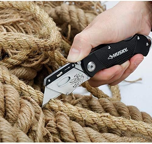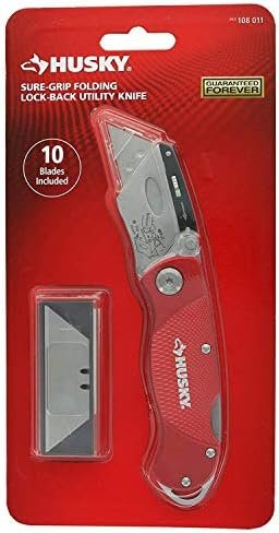 Stripping wires? Check. Ripping up carpet? Check. Opening boxes? You betcha. There are plenty of things you’ll need a utility knife for, and the Husky lockback folding knife is the one to do those things for you. Don’t worry about misplacing this unit. A sturdy metal clip on its side keeps it attached to your pockets or work belts, and its strategically placed lanyard hole keeps it available for twine, keychains, or lanyards. It has simple blade removal mechanics, but it’s sturdy enough that you can be sure they won’t fall out for heavy-duty applications. You’ll be able to keep a grip on this, too. Its aluminum frame is notched, providing a high-friction texture that gives you improved control. When the time comes to switch your blade out, there are 10 available for use in this package, so you won’t have to worry about going to the store for more any time soon after purchasing this. Trust a Husky to stay at your side for the toughest jobs.
