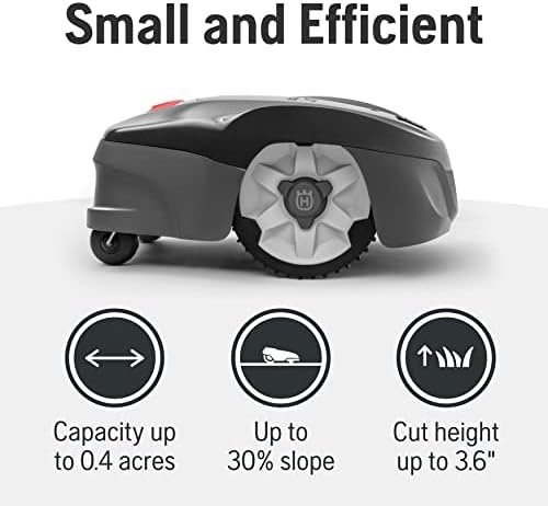 The Husqvarna 115H 4G Robotic Lawn Mower features ultra-quiet, smart-mowing technology from the world leader in robotic mowing(1) to help you effortlessly achieve a beautifully cut lawn with easy control from your smart device. Perfect for small to medium lawns, this electric mower can mow up to 0.4 acre, cover 720 square feet in one hour, and run 60 minutes on a single charge. The patented guidance system automatically returns the battery powered lawn mower to its charging station when the battery is low. With its seamless connectivity, you can control the robot lawn mower from your smartphone with the Automower Connect app. The three razor-sharp blades on this automatic lawn mower cut less grass more frequently for a beautifully maintained lawn. The electric lawn mower also features an adjustable cutting system for cut heights of 2 to 3.6 inches to suit taller grasses. Collision and lift sensors stop the blades instantly when the mower is lifted, keeping children and pets safe. To reduce the risk of theft, Husqvarna robotic lawn mowers use a built-in alarm system that sounds if they are lifted. (1)Based upon value sales (Dollars) Source Euromonitor International Limited; per Robotic Lawn Mowers category definition; Home and Garden 2022ed; retail value sales in RSP, 2021 data.