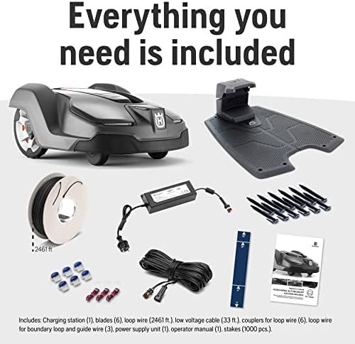 DIY Installation: Set up your Husqvarna robot mower with the self-installation kit (included); place the charging station, bury or lay the boundary wire around the perimeter of your yard, install the guide wire, choose your settings, and start mowing