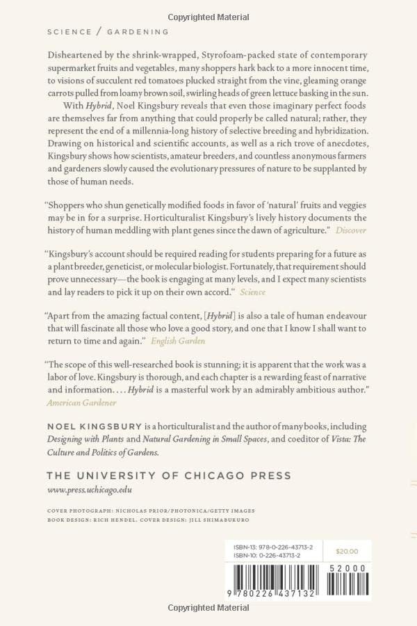 With Hybrid, Noel Kingsbury reveals that even those imaginary perfect foods are themselves far from anything that could properly be called natural; rather, they represent the end of a millennia-long history of selective breeding and hybridization. Starting his story at the birth of agriculture, Kingsbury traces the history of human attempts to make plants more reliable, productive, and nutritious—a story that owes as much to accident and error as to innovation and experiment. Drawing on historical and scientific accounts, as well as a rich trove of anecdotes, Kingsbury shows how scientists, amateur breeders, and countless anonymous farmers and gardeners slowly caused the evolutionary pressures of nature to be supplanted by those of human needs—and thus led us from sparse wild grasses to succulent corn cobs, and from mealy, white wild carrots to the juicy vegetables we enjoy today. At the same time, Kingsbury reminds us that contemporary controversies over the Green Revolution and genetically modified crops are not new; plant breeding has always had a political dimension.