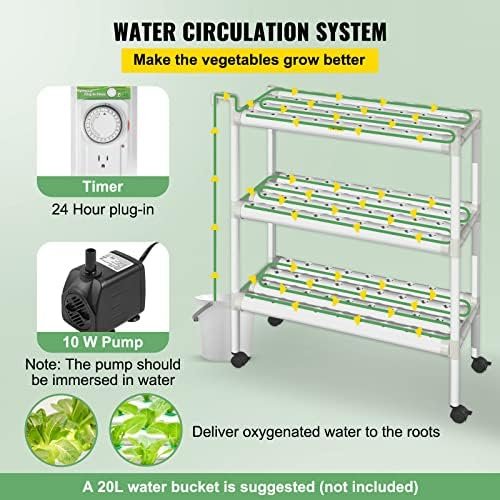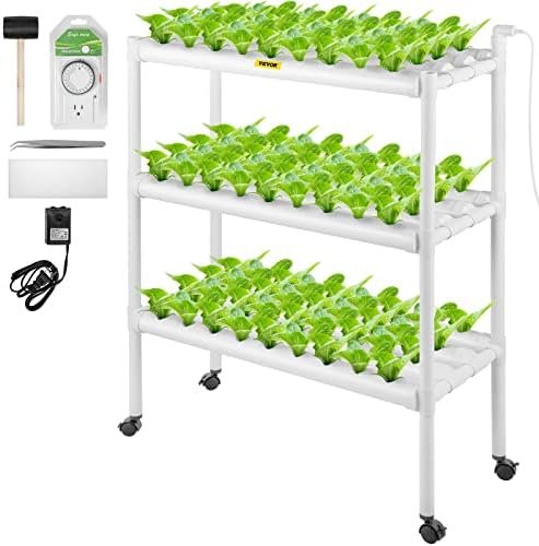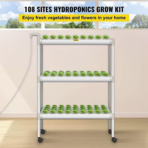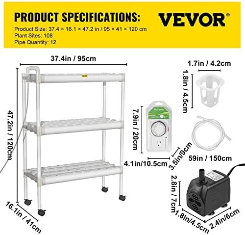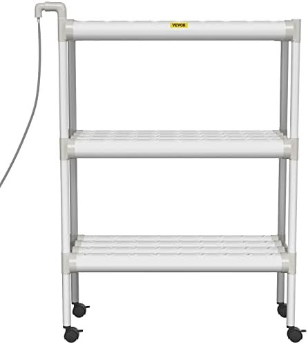 108 Sites Hydroponic Growing System: Layers: 3; Pipe Quantity: 12; Hole Quantity: 108; Pipe Size: 2.5″x31″; Spacing between Holes: 2″; Overall Dimension: 33.9″ x 15.7″ x 44.1″. The proper dimension allows you to harvest fresh vegetables as few or as many as you like.