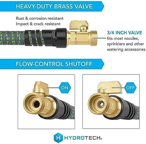 HydroTech 50ft Expandable Burst Proof Garden Hose – Lightweight & Durable – Features Flow-Control Shut-Off & Strain Relief Guard