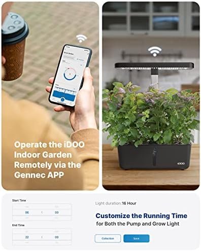 Hydroponics Growing System via “Gennec” App: Pair the hydroponics growing system with the “Gennec” app using WiFi to remotely turn on/off light/pump at any distance. Freely adjust the light time to fit for day shifters or night workers. Adjust the pump runtime according to the different growth stages of your plant. (Only compatible with 2.4GHz Network)