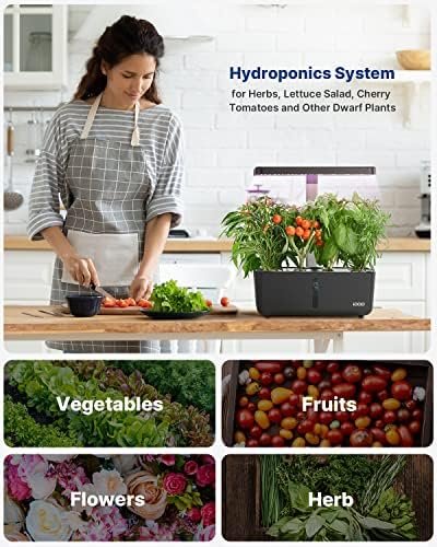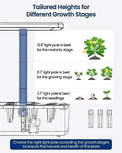 2 Planting Modes & Adjustable Light Height: Choose “Vegetable” or “Flowers & Fruits” mode for your plants to get specific light conditions. The light height of hydroponics growing system can be adjusted to provide sufficient light at every stage of your plants’ growth (Max. 13.6 inches).