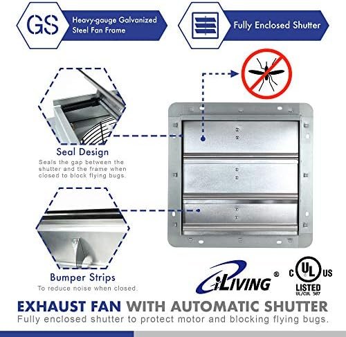 POWERFUL AND EFFICIENT: Small but mighty, you’ll enjoy the power and efficiency of iLiving’s Shutter Exhaust Fan. The 12 inch runs onstandard 120 volts at 1/20 HP, 0.60 amps with 1670 rotations per minute, cooling and ventilating an area of 960 cubic feet per minute!