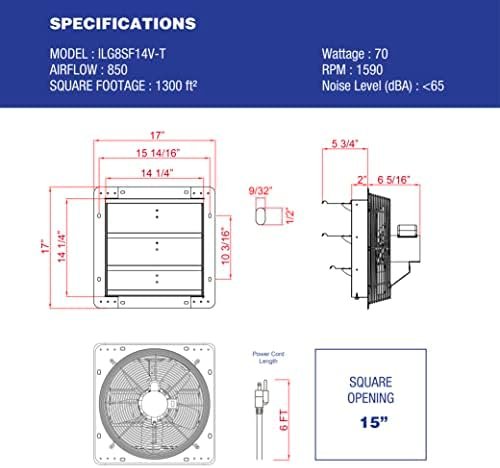 iLiving – Wall-Mounted Shutter Exhaust Fan With Thermostat Control Are you looking for a reliable way to reduce your cooling costs while keeping your home cooler and more comfortable year-round? If so, you’ve found just what you’re looking for! Made with top quality materials, craftsmanship and engineering, the iLiving Shutter Exhaust Fan is designed to offer superior ventilation in any space you choose to install to keep your living space cooler and more comfortable year-round while reducing expensive cooling bills. • Heavy-Duty, Galvanized Steel Frame. • Weather Resistant Aluminum Shutters and Blades. • Motion-Balanced for Quiet Operation. • Thermally Protected and Permanently Lubricated Motor. • Automatic Shutters. • For Home Cooling and Ventilation. • Corrosion-Resistant Wire Guards. • Variable Speed Setting Functionality With Built in Thermostat Control. • UL Listed. • Available in 8 Size Variations. Perfect Cooling and Ventilation Solution For : • Homes , • Attics , • Garages , • Sheds , • Regulating Room Temperature , • Reducing Cooling Costs , • And More. The fan comes fully assembled out of the box; easy installation when plugged into an approved electrical outlet. The shutter fan comes in 8 different sizes: 10 inches, 12 inches, 14 inches, 16 inches, 18 inches, 20 inches, 24 inches and 30 inches.