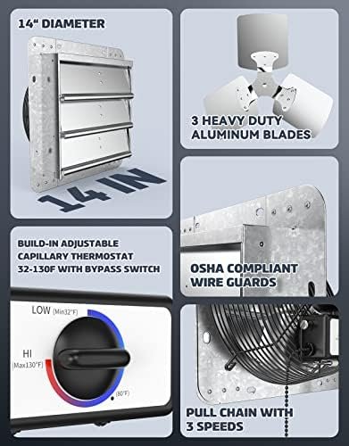 THERMOSTAT CONTROL: Customize your comfort. iLiving Exhaust Fan features 3-speeds and built-in thermostat control to help regulate room temperature within a range of 32-130 °F.
