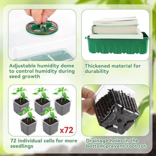 Convenient Individual 72 Cells: Elevate your seed-starting game with our user-friendly seed starter tray. Each cup is independent, providing ease in handling and storage. When it’s time to transplant seedlings, the individual cells make the process a breeze.