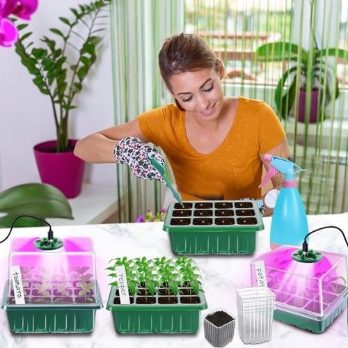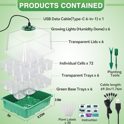 Premium Quality and Versatile Design: Crafted from durable material, the seed starting tray ensures longevity. Illuminate with full-spectrum lighting, while the adjustable dome regulates humidity for optimal germination. Drainage holes prevent root rot. Inclusive instructions guarantee easy installation, making gardening hassle-free. Elevate your experience with our seedling starter trays – a harmonious fusion of quality and functionality.