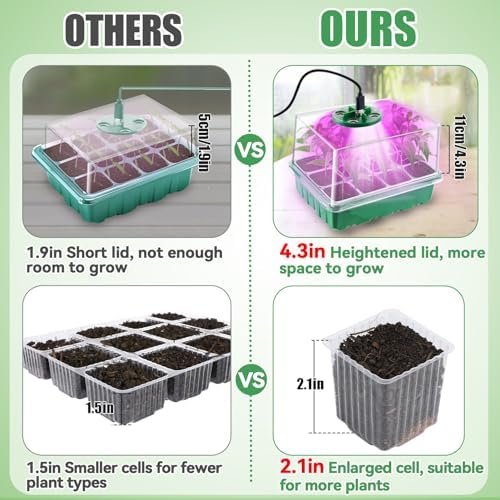 Ample Size for Diverse Seeds: Size matters in seed cultivation. Our internal seed cells are larger than regular style, accommodating a variety of plant seeds. Paired with the heightened, transparent lid, this seed starter kit ensures sufficient space and nutrients for every seed, fostering healthy growth.