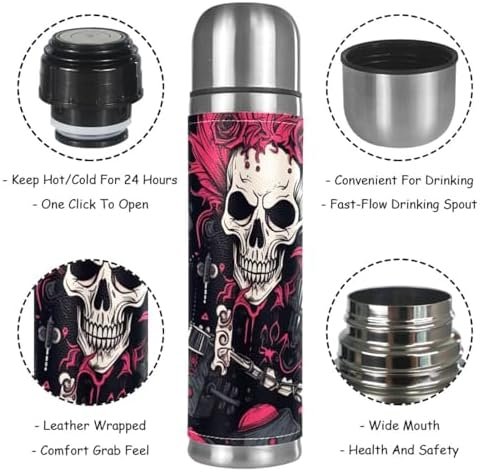 Insulated Mug with Dark Punk Stainless Steel Water Bottle for Sports and Travel, Premium Thermal Travel Coffee Mug