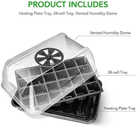 Package Includes: Kit includes: 24 site Seed Cell Tray Insert Heat Propagation Tray Humidity controlled 5in Propagation Dome with Vents. Comes with everything you need in this kit to start your seedlings