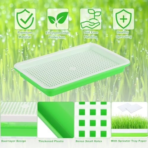 REASONABLE DESIGN: Our seed sprouting trays for microgreens have dense small holes that will provide good breathability for sprouting seeds. The dual-layer design helps you control watering amount reasonably.
