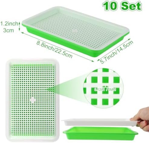 10 Set Microgreens Growing Trays, a perfect tool that allows you to sprout seeds in an easier effective and intuitive way, will helps you control water amount reasonably.