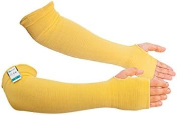 The arm sleeves are made with high Performance Cut/Scratch Resistant material KEVLAR by DuPont. It will provide flexibility, compression, and protect Arm against Scrapes, Scratches, Cuts, Heat, and Skin Irritations. Kevlar Cut-Resistant sleeves provide Anti-Slip Elasticity, and will not melt, ignite or conduct electricity. It is designed with a thumb support so that it stays in its place.