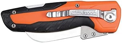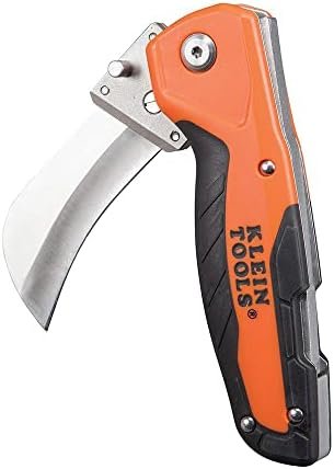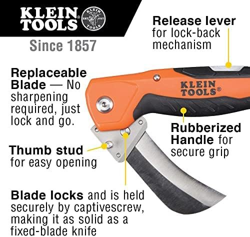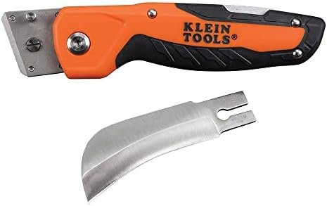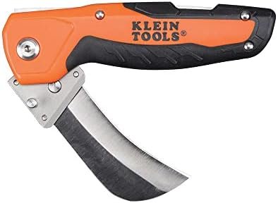 This folding utility knife features a heavy-duty hawkbill blade that is easily replaceable to eliminate the need for sharpening
