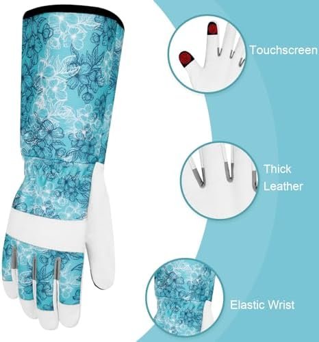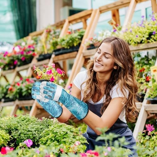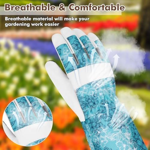 Leather Long Gardening Gloves for Women Thorn Proof Garden Gloves Yard Working Gloves
